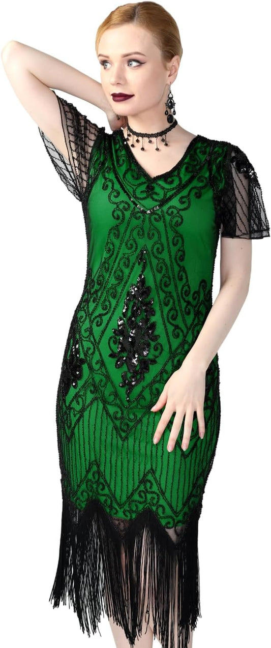 Women'S Flapper Dresses 1920S Sequins Art Deco Gatsby Cocktail Dress with Sleeve